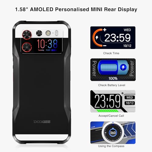 • Pantalla trasera secundaria innovadora de 1.58 pulgadas para notificaciones y control de música.