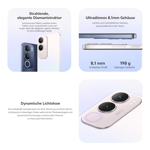 vivo Y19s GT 5G (8GB + 256GB) es más pesado que un smartphone medio (199 g vs 196.2 g). El smartphone promedio pesa 196.2 g.