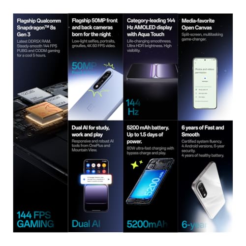 The OnePlus Nord 5 represents a significant "generational leap" rather than a minor update, featuring a high-performance Snapdragon 8s Gen 3 chipset and a 144Hz AMOLED display. It boasts a massive 6,800mAh battery providing nearly two days of usage, coupled with 80W fast charging. The device includes a 50MP primary camera with improved HDR and a sharp 50MP front-facing camera....Leer más